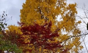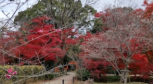 紅葉のモミジと、ピンクと白の桜。秋の中に春を見たようだとヨタヨタ歩いていると夫婦らしき二人。男の方が樹木や園内の説明をやっている。「なかなかお詳しいですね」と声をかけると、嬉しそうに我々にも話かけて来た。近くに住んでいるので、毎日来て来園者...