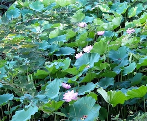 ベンチに腰掛け蓮を眺めながら汗の引くのを待つ。