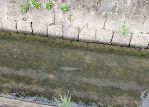 前に流れている川には鮒や亀、たまには白い首と足が長い鳥も見られます。(サギかも?)